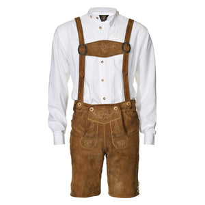 Man decides between a short (knee-length) "Kracherten" or a Bundlederhose.